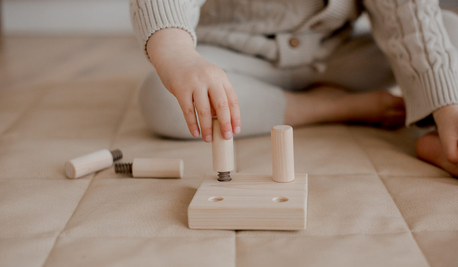 The screw game is a great challenge for toddlers to explore twisting and hand eye coordination. The motion required to screw uses a range of hand and arm muscles, strengthen these muscles with this activity.